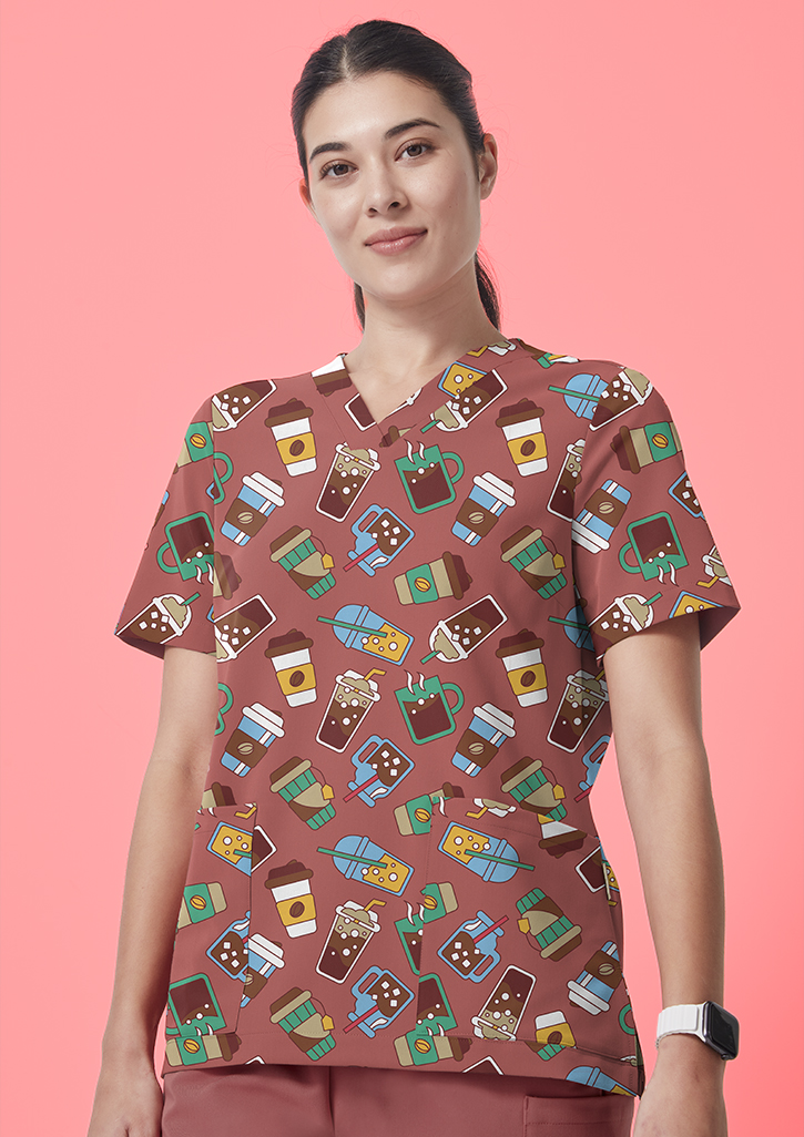 Features: Tailored fit, Bust darts for shape, 2 Deep front pockets, Side splits, Shoulder loop, Matching jogger scrub pants also available CSP491LL;